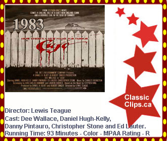 CUJO (1983) A sweet St. Bernard, Cujo, is bitten by a bat and starts behaving oddly then becomes very aggressive. As Cujo morphs into a dangerous beast, he goes on a rampage in a small town. Stay-at-home mom Donna (Dee Wallace) gets caught in Cujo's cross-hairs on a fateful errand with her son, Tad (Danny Pintauro). Stuck in their tiny car, Donna and Tad have a frightening showdown with the crazed, killer canine. Director: Lewis Teague. Cast: Dee Wallace, Daniel Hugh-Kelly, Danny Pintauro, Christopher Stone and Ed Lauter. |