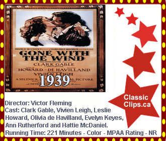 GONE WITH THE WIND (1939) Epic Romance, Drama - Gone with the Wind tells the tale of Scarlett O’Hara and the three loves of her life; Tara (her family plantation), Ashley Wilkes, and Rhett Butler. Through three husbands and one child, Scarlet uses all of her might to preserve Tara through the destruction of the American Civil War. She pines shamelessly for Ashley Wilkes despite his marriage to the saintly Melanie Hamilton. Scarlett is her own worse enemy as she realizes too late that her true love is a man a lot like her, Rhett Butler. Director: Victor Fleming. Cast: Clark Gable, Vivien Leigh, Leslie Howard, Olivia de Havillan, Evelyn Keyes, Ann Rutherford and Hattie McDanield. |