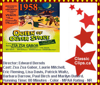 QUEEN OF OUTER SPACE (1958) American astronauts are drawn by a mysterious force to the planet Venus, which they find to be inhabited only by beautiful women and their despotic queen. Director: Edward Bernds. Cast: Zsa Zsa Gabor, Laurie Mitchell, Eric Fleming, Lisa Davis, Patrick Waltz, Barbara Darrow, Paul Birch and Marilyn Buferd.. |