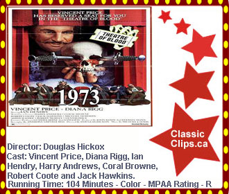THEATRE OF BLOOD (1973) Edward Kendal Sheridan Lionheart (Vincent Price) is as an actor overlooked for a critics' acting award, despite producing a season of Shakespearean plays. After confronting the Critics' Circle, an attempted suicidal dive into the Thames results in Lionheart being rescued by your typical paraffin/meths/turps swigging tramps. Lionheart then (presumed dead) exacts his grizzly, and quite amusing, revenge on the critics who denied him his finest hour. Director: Bert I. Gordon. Cast: Vincent Price, Diana Rigg, Ian Hendry, Harry Andrews, Coral Browne, Robert Coote, Diana Dors, Jack Hawkins,, Joan Hickson, Michael Hordern, Arthur Lowe, Robert Morley, Milo O'Shea, Dennis Price and Eric Sykes. |
