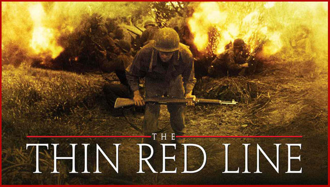 The Thin Red Line is a 1998 American epic war film written and directed by Terrence Malick. It is the second screen adaptation of the 1962 novel of the same name by James Jones, following the 1964 film; however, this film is not considered a remake. Telling a fictionalized version of the Battle of Mount Austen, which was part of the Guadalcanal Campaign in the Pacific Theater of World War II, it portrays soldiers of C Company, 1st Battalion, 27th Infantry Regiment, 25th Infantry Division, played by Sean Penn, Jim Caviezel, Nick Nolte, Elias Koteas and Ben Chaplin. The novel's title alludes to a line from Rudyard Kipling's poem "Tommy", from Barrack-Room Ballads, in which he calls British foot soldiers "the thin red line of heroes", referring to the stand of the 93rd Regiment in the Battle of Balaclava of the Crimean War. - Source Wikiedia