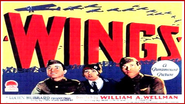 Wings is a 1927 and 1929 American silent war film set during World War I, produced by Lucien Hubbard, directed by William A. Wellman, released by Paramount Pictures, and starring Clara Bow, Charles Rogers and Richard Arlen. It won the first Academy Award for Best Picture. Gary Cooper appears in a small role which helped launch his career in Hollywood.