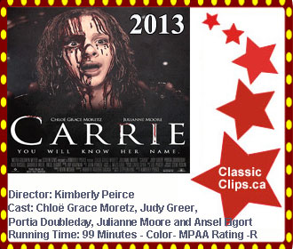 CARRIE (2013) High school can be tough for many teenagers, but for Carrie White (Chloƫ Grace Moretz), it's especially hellish. A shy and awkward teen being raised by a religious zealot (Julianne Moore), Carrie is frequently the target of bullies. But Carrie has a secret talent: She can make things move with her mind. One fateful night, an especially cruel prank at her senior prom pushes her over the edge, and Carrie unleashes her telekinetic powers on all who get in her way. Director: Kimberly Peirce. Cast: Chloƫ Grace Moretz, Judy Greer, Portia Doubleday, Julianne Moore, Gabriella Wilde, Alex Russell and Ansel Elgort. |