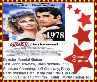 GREASE (1978) Good girl Sandy (Olivia Newton-John) and greaser Danny (John Travolta) had a whirlwind of a summer romance, but unfortunately summer had to come to an end. Then, they unexpectedly discover that Sandy's family has moved and the pair are now in the same high school. Sandy befriends a group of girls who call themselves the Pink Ladies and tells them about her summer love, while Danny tells his friends, the T-Birds, about his summer fling. When the girls find out Sandy has been swept off her feet by none other than their own Danny Zuko, one of the girls arranges a surprise meeting for the lovebirds. When Danny is forced to maintain his bad-boy image in front of the boys, he accidentally upsets Sandy. The only question that remains: will they be able to rekindle their summer romance? Director: Randal Kleiser. Cast: John Travolta, Olivia Newton-John, Stockard Channing, Jeff Conaway, Barry Pearl, Michael Tucci Kelly Ward, Didi Conn, Jamie Donnelly, Dinah Manoff, Eddie Deezen, Susan Buckner, Lorenzo Lamas, Dennis C. Stewart, Annette Charles, Eve Arden, Dody Goodman, Sid Caesar, Alice Ghostley, Darrell Zwerling, Dick Patterson, Fannie Flagg, Joan Blondell, Ellen Travolta, Frankie Avalon, Edd Byrnes and Sha Na Na. |