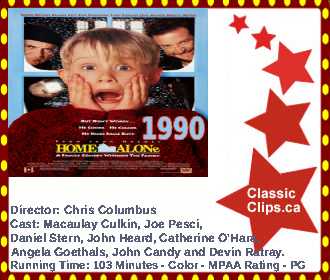 HOME ALONE (1990) When misunderstood, 8-year-old Kevin McCallister (Macaulay Culkin) remonstrates and defends himself the night before a family trip to Paris, his mother (Catherine O'Hara) makes him sleep in the attic. After the McCallisters mistakenly leave for the airport without Kevin, he awakens to an empty house and assumes his wish to have no family has come true. But his excitement sours when he realizes that two con men (Joe Pesci, Daniel Stern) plan to rob the McCallister residence, and that he alone must protect the family home. Director: Chris Columbus. Cast: Macaulay Culkin, Joe Pesci, Daniel Stern, John Heard, Catherine O'Hara, Angela Goethals, John Candy and Devin Ratray. |