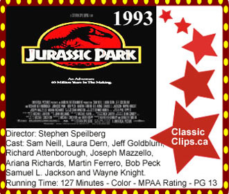 JURASSIC PARK (1993) On a remote island, a wealthy entrepreneur secretly creates a theme park featuring living dinosaurs drawn from prehistoric DNA. Before opening the attraction to the public, he invites a top paleontologist, a paleobotanist, a mathematician/theorist, and his two eager grandchildren to experience the park -- and help calm anxious investors. However, their park visit is anything but tranquil as the park's security system breaks down, the prehistoric creatures break out, and the excitement builds to surprising results. Director: Stephen Speilberg. Cast: Sam Neill, Laura Dern, Jeff Goldblum, Richard Attenborough, Joseph Mazzello, Ariana Richards, Martin Ferrero, Bob Peck, Samuel L. Jackson and Wayne Knight. |