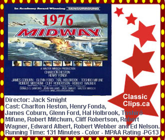 MIDWAY (1976) The Battle of Midway, a clash between the American fleet and the Imperial Japanese Navy, marked a pivotal turning point in the Pacific Theater during WWII. The film, based on the real-life events of this heroic feat, tells the story of the leaders and soldiers who used their instincts, fortitude and bravery to overcome the odds. The film starts with the Doolittle Raid (April 1942), and then goes on briefly to mention the Battle of the Coral Sea(May 1942). It then describes the planning for the Battle of Midway (June 1942), depicting the creation of a complicated battle plan. Unknown to the Japanese, American signals intelligence has broken the Japanese Naval encryption codes and suspects that the ambush will take place at Midway Island. They are of course correct, but are asleep at the wheel that fatal early Sunday mornning when the Japanese fleet launched a decisive and fatal blow to Midway: June 7, 1942. Director: Jack Smight. Cast: Charlton Heston, Henry Fonda, James Coburn, Glenn Ford, Hal Holbrook, ToshirĂ´ Mifune, Robert Mitchum, Cliff Robertson, Robert Wagner, Edward Albert, Robert Webber, Ed Nelson, James Shigeta, Christina Kokubo, Monte Markham, Biff McGuire, Christopher George, Kevin Dobson and Gregory Walcott. |