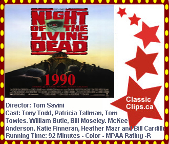 NIGHT OF THE LIVING DEAD (1990) For reasons unknown, the recently deceased are rising from the grave as flesh-hungry zombies. Fleeing from the undead horde, a small group of survivors, including Barbara (Patricia Tallman), Ben (Tony Todd) and Harry (Tom Towles), sequester themselves in a remote farmhouse. With the zombies outside the house multiplying, tensions flare, as the group argues over the best way to escape their increasingly dire situation before they are overrun completelyn. Director: Tom Savini. Cast: Tony Todd, Patricia Tallman and Tom Towles. |