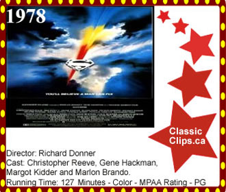 SUPERMAN (1978) Unable to convince the ruling council of Krypton that their world will destroy itself soon, scientist Jor-El takes drastic measures to preserve the Kryptonian race: He sends his infant son (Christopher Reeve), Kal-El to Earth. There, gaining great powers under Earth's yellow sun, he becomes a champion of truth and justice. Raised by the Kents, an elderly farm couple, Kal-El, now Clark Kent, learns that his abilities must be used for good. The adult Clark travels to Metropolis, where he becomes a mild-mannered reporter for the Daily Planet and a caped wonder whose amazing feats stun the city: Superman! Meanwhile, Lex Luthor, the world's greatest criminal mind, is plotting the greatest real estate swindle of all time and it is up to Superman to stop him. Director: Richard Donner. Cast: Christopher Reve, Gene Hackman, Margot Kidder and Marlon Brando. |