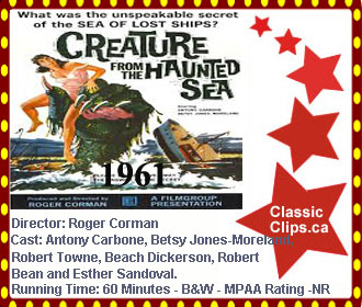 THE CREATRUE FROM THE HAUNTED SEA (1961) After political unrest breaks out on a Caribbean island, scheming criminal Renzo Capetto (Anthony Carbone) sees an opportunity. He promises to transport a group of exiles out of the country while also taking part of the national treasury. Followed onto the boat by an American agent Sparks Moran (Edward Wain ,pseudonym for |