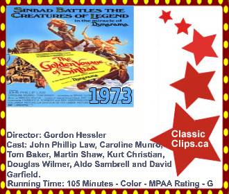 THE GOLDEN VOYAGE OF SINBAD8 (1973) Sinbad's adventure pits him against a master magician who's trying to reach the Fountain of Destiny on the lost land of Lemuria in a bid to be crowned the new leader of Marabia. Sinbad and his crew must battle an array of monsters before finally coming face to face with his foe. Director: Gordon Hessler. Cast: John Phillip Law, Caroline Munro, Tom Baker, Martin Shaw, Kurt Christian, Douglas Wilmer, Aldo Sambrell and David Garfield. |