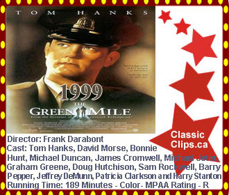 THE GREEN MILE (1999) Paul Edgecomb (Tom Hanks) walked the mile with a variety of cons. He had never encountered someone like John Coffey (Michael Clarke Duncan), a massive black man convicted of brutally killing a pair of young sisters. Coffey has the size and strength to kill anyone, but not the demeanor. Beyond his simple, naive nature and a deathly fear of the dark, Coffey also possess a prodigious, supernatural gift leading Paul to question whether Coffey is truly guilty and capable of murder at all. Director: Frank Darabont. Cast:Tom Hanks, David Morse, Bonnie Hunt, Michael Clarke Duncan, James Cromwell, Michael Jeter, Graham Greene, Doug Hutchison, Sam Rockwell, Barry Pepper, Jeffrey DeMunn, Patricia Clarksonand Harry Dean Stanton. |