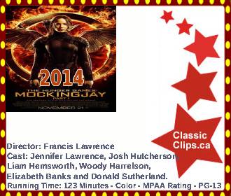 THE HUNGER GAMES: MOCKINGJAY PART 1 (2014) Following her rescue from the devastating Quarter Quell, Katniss (Jennifer Lawrence) awakes in the complex beneath the supposedly destroyed District 13. Her home, District 12, has been reduced to rubble, and Peeta Mellark (Josh Hutcherson) is now the brainwashed captive of President Snow (Donald Sutherland). At the same time, Katniss also learns about a secret rebellion spreading throughout all of Panem - a rebellion that will place her at the center of a plot to turn the tables on Snow. Director: Francis Lawrence. Cast: Jennifer Lawrence, Josh Hutcherson, Liam Hemsworth, Woody Harrelson, Elizabeth Banks and Donald Sutherland. |