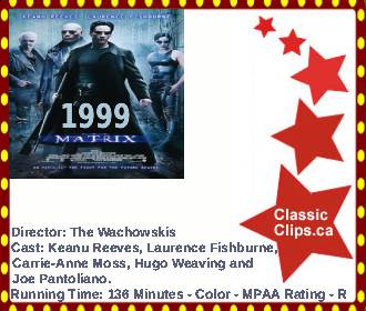 THE MATRIX (1999) Neo (Keanu Reeves) believes that Morpheus (Laurence Fishburne), an elusive figure consideed to be the most dangerous man alive, can answer his question - What is the Matrix? Neo is contacted by Trinity (Carrie-Anne Moss), a beautiful stranger who leads him into an underworld where he meets Morpheus. They fight a brutal battle for their lives against a cadre of viciously intelligent secret agents. It is a truth that could cost Neo something more precious than his life. Director: The Wachowskis. Cast: Keanu Reeves, Laurence Fishburne, Carrie-Anne Moss, Hugo Weaving and Joe Pantoliano. |